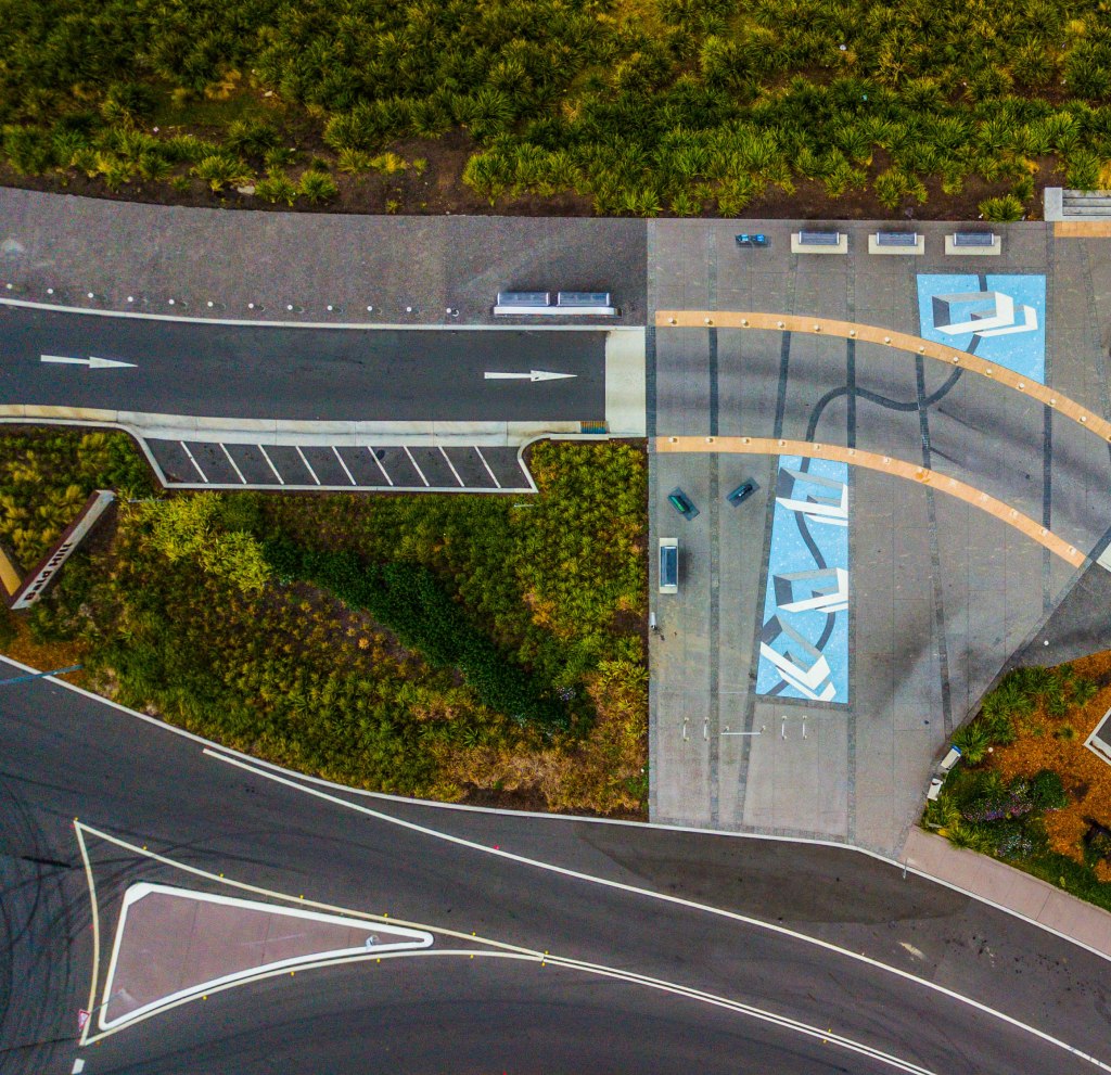 The large scale of the Box Hill piazza makes it visible from the air, extending a visual dialogue to those soaring above in machines that owe their existence to the revolutionary kites that first flew from this unique site.